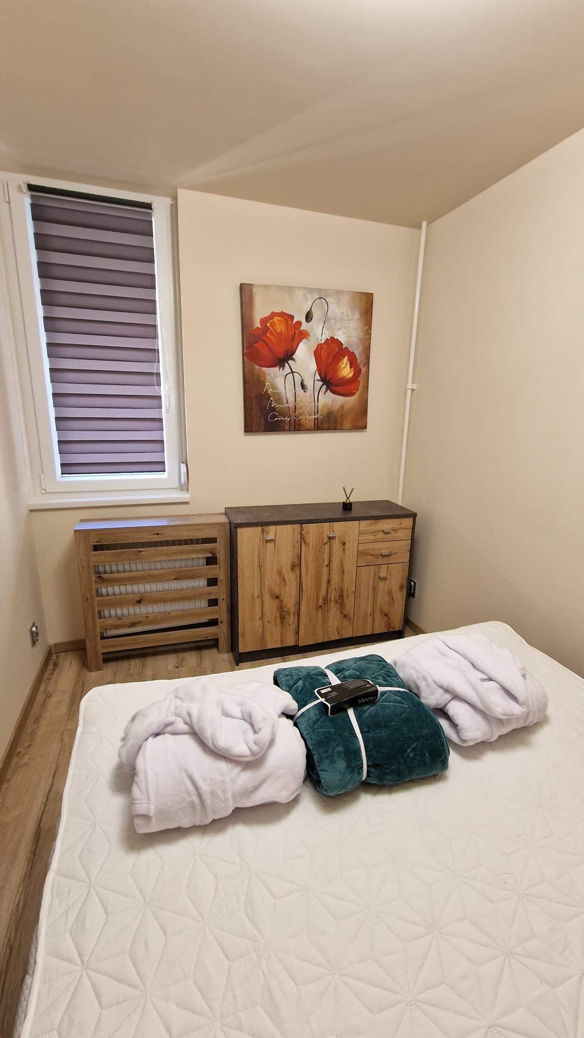 Az apartman mindennel felszerelt, kávé és tea ingyenesen a rendelkezésére áll. 2 db 160×200 ágy biztosítja a kényelmes pihenést.